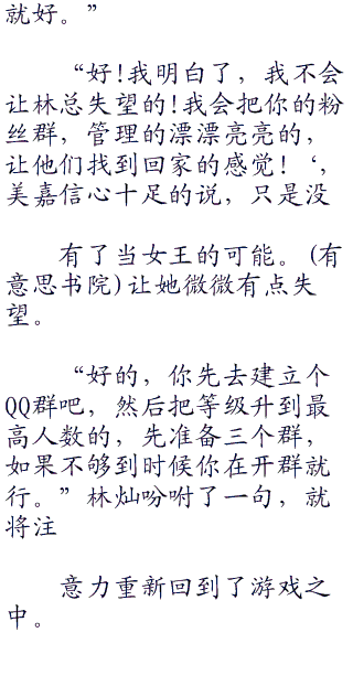 林灿淡淡一笑,点头说:“其实很简单,我想建立个粉丝群,然后让你来帮助我管理。”