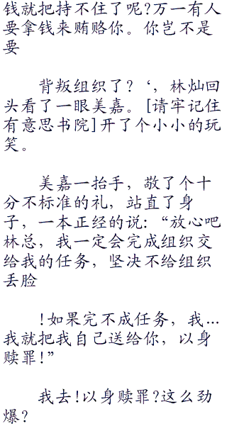 “什么任务?只要是林总交代的任务,我一定会完成!并且完美的完成!‘,美嘉立马开口保证了,也不关心是什么任务。