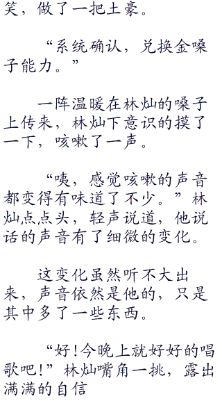 【0151】:兑换金嗓子(第四更,求打赏!)