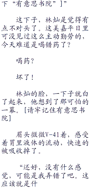 接过来水杯,林灿瞅了一眼,觉得这不大像是蜂蜜水的颜色啊。