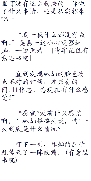 林灿扭头问二‘l美嘉,现在不是上班时间,你不用给我送水的。”