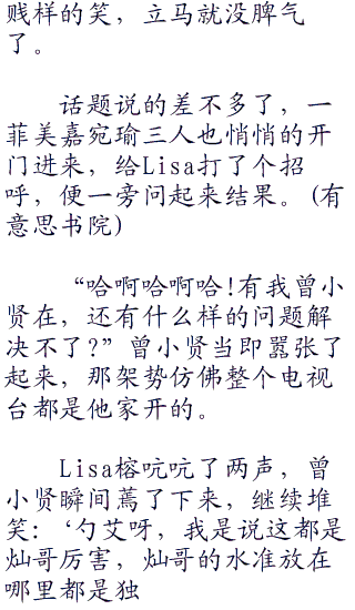 曾小贤嘿嘿笑着凑了上来,柔声说:‘,li sa!你看,我没有骗你吧。”