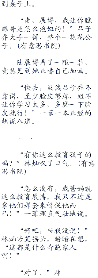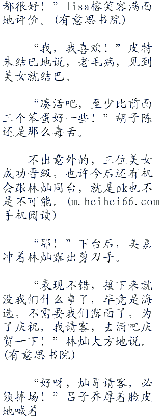 “在下吕子乔,艺名吕小布,喜好是美女,如果有哪位美女对本人有意思,可以拨打电话xxx联系我,谢谢!”吕子乔yin荡一笑,这哪里是表演,分明就是相亲来了。