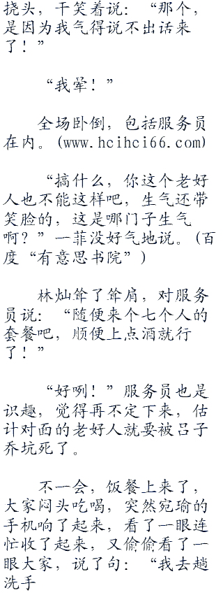 美嘉一口白开水差点没呛死,冲吕子乔吼叫:“我一口盐汽水喷死你,这里是中餐厅,不是西餐,一样七份,你想撑死谁啊?”