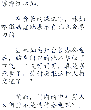 满心期待地面见电视台台长,没想到是这幅德行,林灿真想找把叠折凳拍死这只癞蛤蟆。