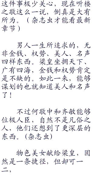 PS:今天五更了,竟然木有人打赏QAQ,难道你们已经不爱九尾了么?九尾要哭了,哇......忍不住了,九尾已经哭晕在厕所。