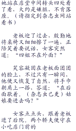 轿夫打起轿帘,出来的是位女客。虽是夏日,她仍然带着面纱,进了小吃店后,