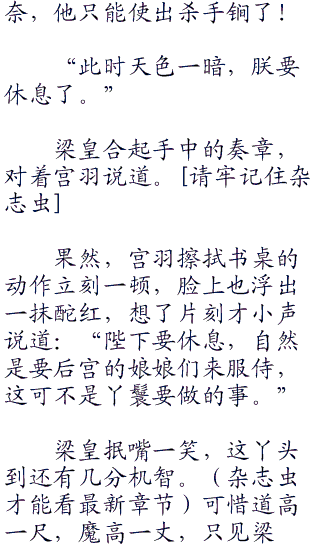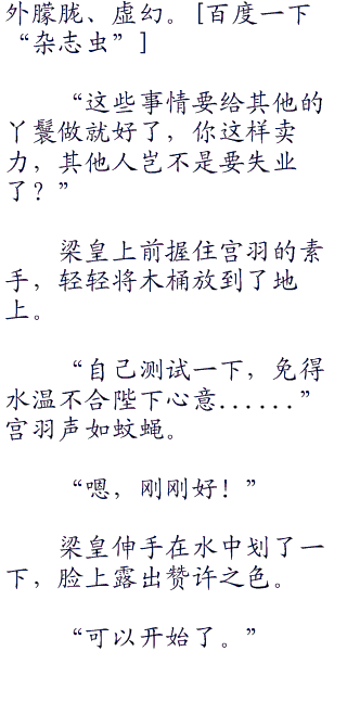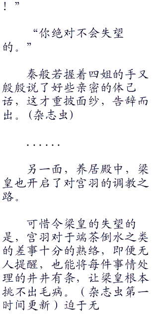 PS:昨天连写两章,全被屏蔽了(泪奔......)所以今天的章节可能晚点,见谅。