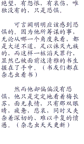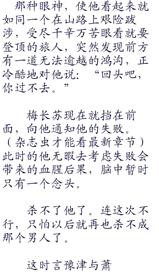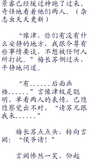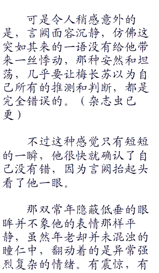 梅长苏只遥遥凝目看了他一眼,便快步走了过去,反而是言豫津站在原处发呆,一步也没有迈出。
