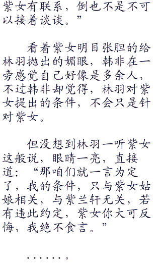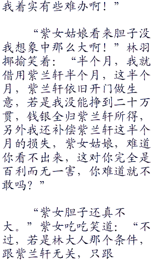 林羽听罢,不置可否笑道:“那么我再问紫女姑娘,你这紫兰轩,究竟有何地方吸引来这么多客人?”