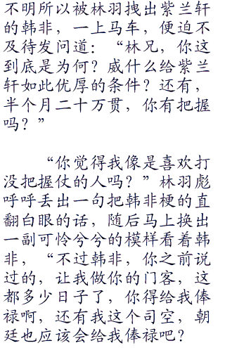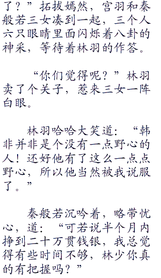 但没想到林羽一听紫女这般说,眼睛一亮,直接道:“那咱们就一言为定了,我的条件,只与紫女姑娘相关,与紫兰轩无关,若有违此约定,紫女你大可反悔,我绝不食言。”