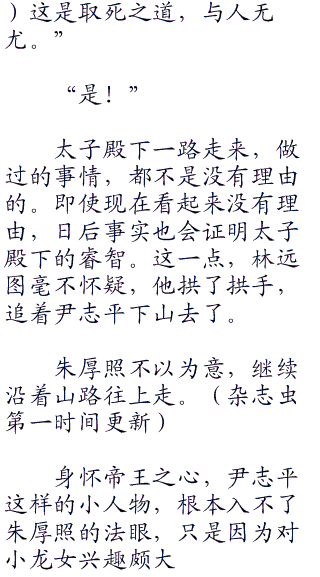 此时的尹志平还只是一个十七八岁的年轻道士,心性轻浮不定,在全真教里一直对全真七子俯首帖耳。此时,乍听到朱厚照的一声“道长”的敬称,他脸上的笑容更甚,躬身又行一礼,才往山下走去。
