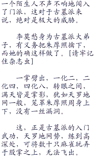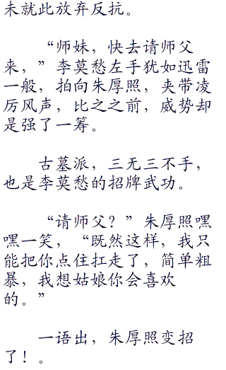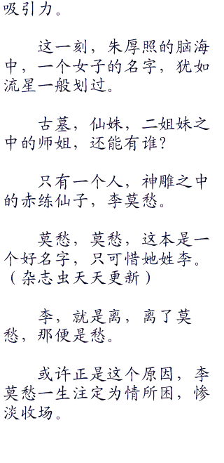 “师妹,师姐离开古墓出去闯荡江湖的事情,就靠你兜着了。好好帮师姐,师姐是不会亏待你的。等师姐回来,一定给你带好吃的……”