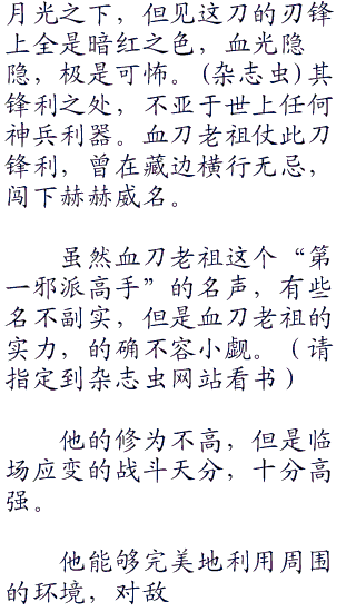这个红袍的和尚,是血刀老祖,大宋帝国血刀门第四代掌门人,号称大宋帝国第一邪派高手。