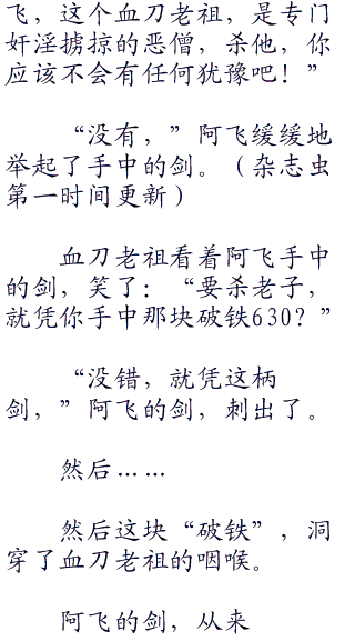 血刀老祖也是个采花27贼呢!而且是一个绝顶高手的采花贼,他的威胁,比田伯光高出了十倍不止。这种真小人,是朱厚照必杀的。