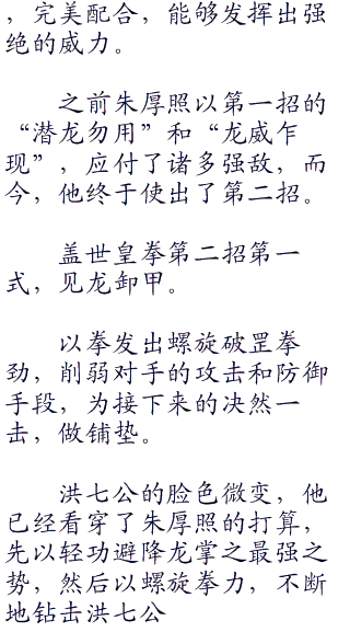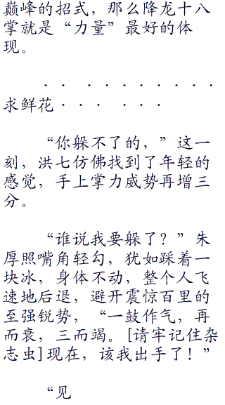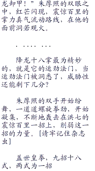 不屑在功力上占朱厚照的便宜,洪七压制自身九成以上的真气,只使用了二流层次的功力,来对决朱厚照。