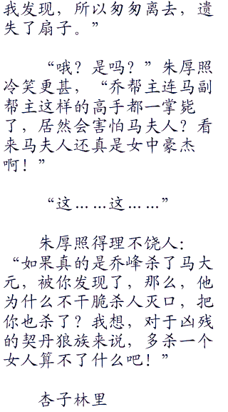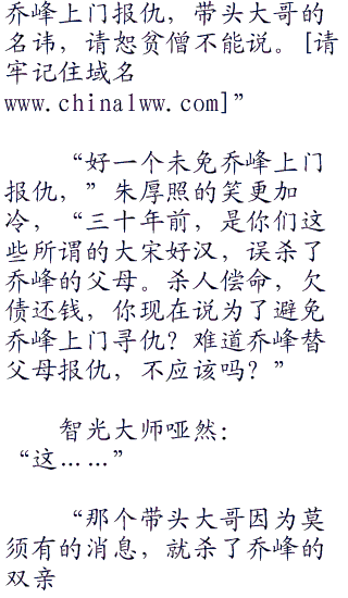 “我且问你们,”朱厚照望向谭公谭婆,“你们口口声声说,三十年前,一位带头大哥带领你们诸多武林人士,前往雁门关,拦截一个契丹武士,那么,那个带头大哥到底是谁?”