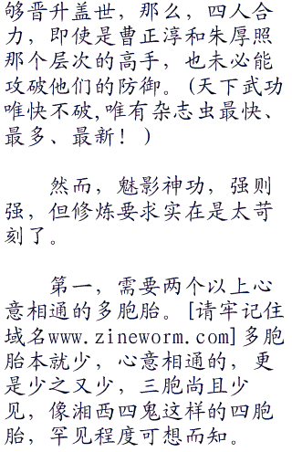 修炼魅影神功的人越多,修炼者之间,配合越默契,这门武功的威力,就越强。其中最典型的,要数万三千的四大护卫湘西四鬼。