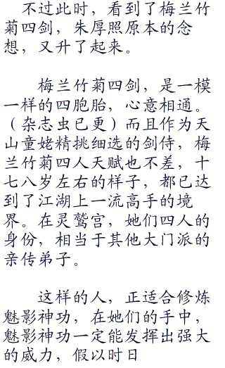 看着梅兰竹菊,朱厚照心中一动,想起一门被他偷学之后,一直闲置着的武功。