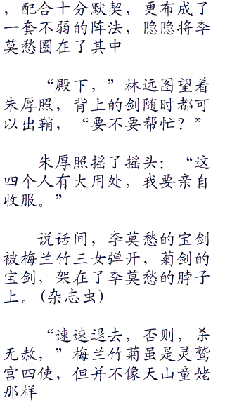 没错,朱厚照想到的,正是魅影神功。魅影神功是江湖上最神奇的武功之一,讲究寓守为攻,几个心意相通的人合力卸去对手的功力。