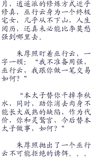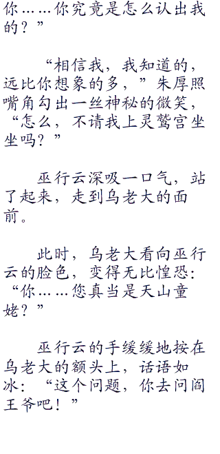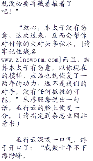 看着众人难以置信的表情,朱厚照嘴角轻勾,对巫行云笑道:“巫行云,本太子已经知道了你的身份,你