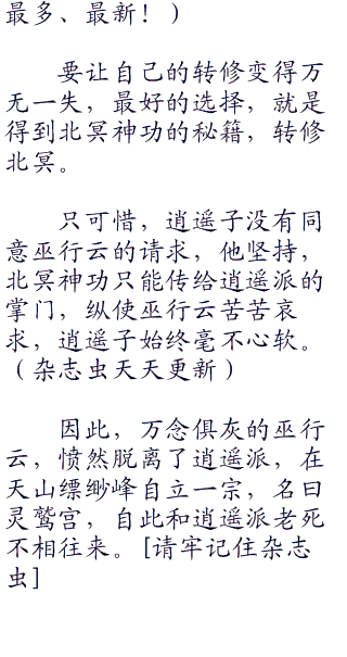 甚至可以说,若非“李秋水”和“身躯缺陷”这两个执念一直纠缠在巫行云心里,让巫行云难以释怀。以巫行云的天赋,此时有不小的可能已经晋升求道境了。
