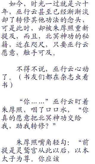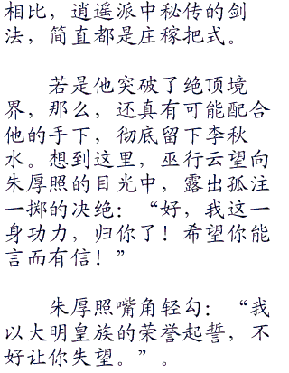 朱厚照念着,巫行云的脸上,惊容愈来愈盛,因为她知道,这正是逍遥派的无上经典,纵使和八荒**唯我独尊功相比,也要略胜一筹的北冥神功。