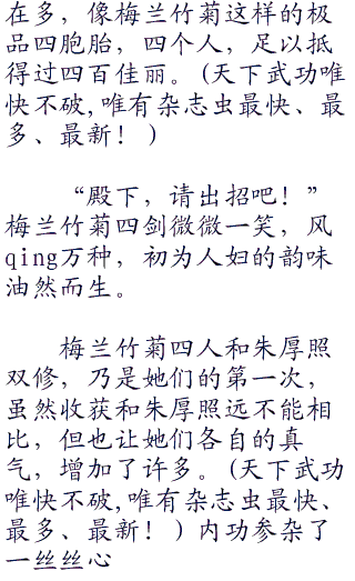 梅兰竹菊四人,原本皆刚刚突破一流境界,修为不算低,加之梅兰竹菊四胞胎,四位一体,又心意相通,其中任何一个受到了挑dou,其他三人都感同身受,发出同样的呻yin。