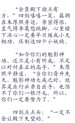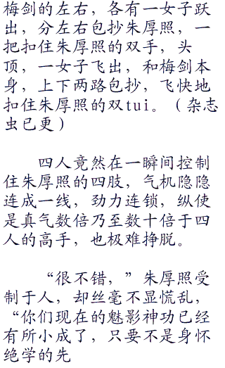 没错,这四个白衣女子,正是梅兰竹菊四剑,而她们此时修炼的,正是魅影神功。