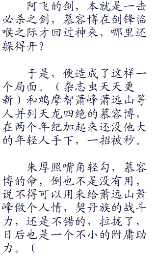 当然,阿飞毕竟晋升到先天不久,境界才刚刚稳固,要一击击杀天龙四绝之一的慕容博,单靠他一个人,成功率不足一成。