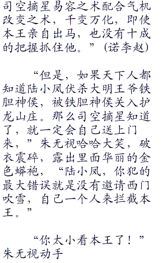 很少人知道,护龙山庄最中心,铁胆神侯的卧室里,有一条密道通向朱无视的秘密练功房,朱无视经常在这里,修炼自己的武功。