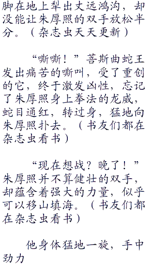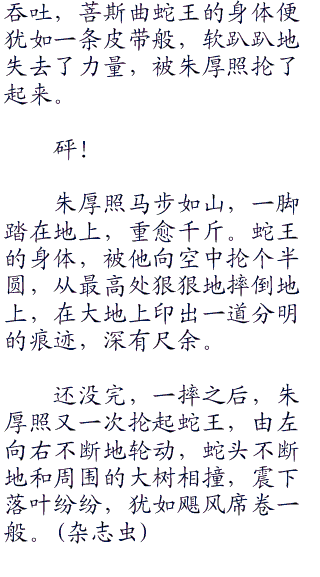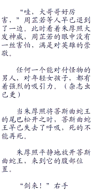 朱厚照战至酣畅淋漓,念头通达,在战斗中,宝蛇的药力,不断地被他炼化,化为自己的底蕴,渐渐如臂指使,运用浑然。