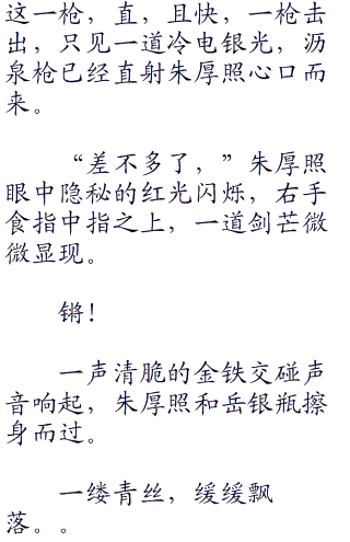 当年,岳飞就是凭借一杆枪,纵横沙场,莫有人能敌。而12今虽然岳飞挂帅,不再轻易出手,但是,几十年前留下来的威风,依旧没有减弱分毫。