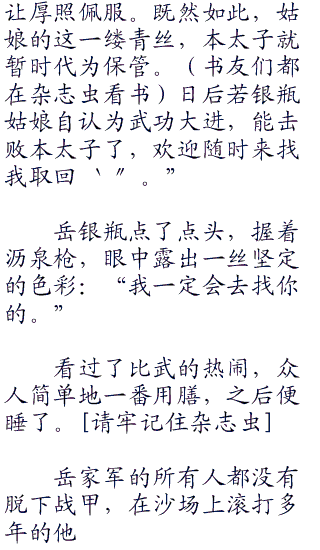 从小到大,岳银瓶还从来没有被同龄甚至比自己年龄更小的人这丫轻易地击败。她甚至都没完全看清楚朱厚照的招式,只看到朱厚照的指头上,闪过一道剑芒,然后,然后自己就败了。