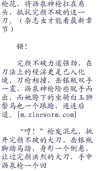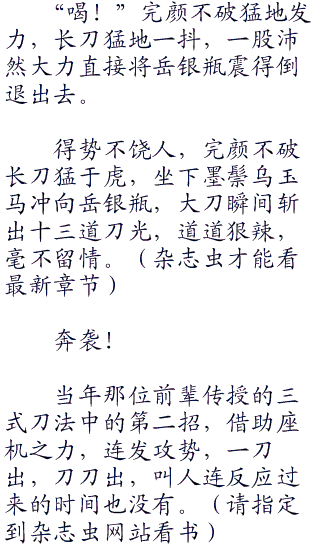 大刀猛于虎,这句话一点也不假,这一刀,完颜不破完全是无视岳银瓶的枪法,无视自身安危,只攻不守。
