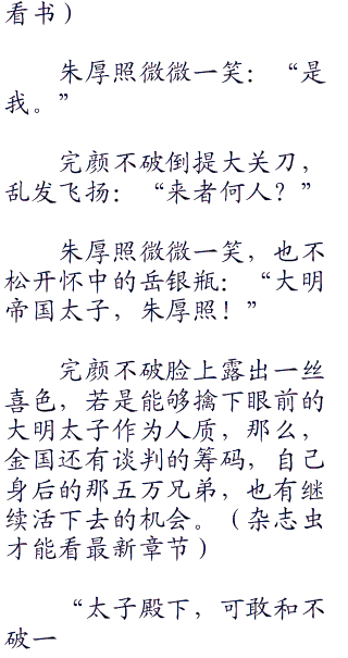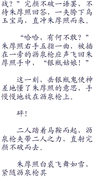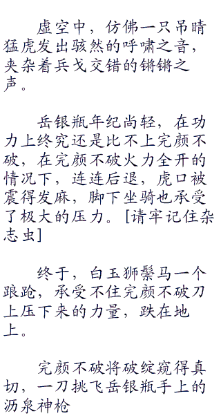 “夜叉先锋?”完颜不破凝视岳银瓶,“岳家军的传奇先锋夜叉,竟然是一个女子?”