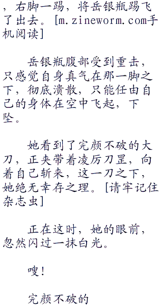 觑得真切,完颜不破一刀斩出,刀罡破风,如呼啸之声,直劈岳银瓶脑袋。