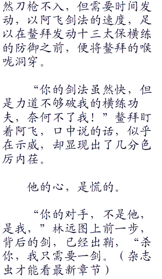 鳌拜和张召重的脸色变得十分难看,从林远图和阿飞的身上,他们感受到极为隐蔽却又致命的威胁感。
