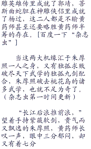 可是世界上没有如果,黄药师遇到的,偏偏就是先后吞服了宝蛇和菩斯曲蛇蛇胆的朱厚照。
