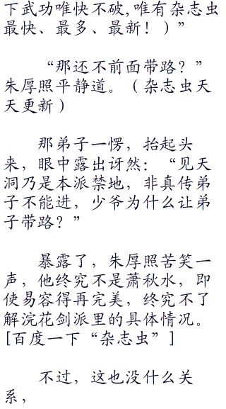 同样地,也没有任何人对他的闯入阻拦,没有人觉得奇怪惊讶,甚至看门的那些浣花剑派弟子在看到朱厚照的时候,还要给朱厚照鞠躬行礼。