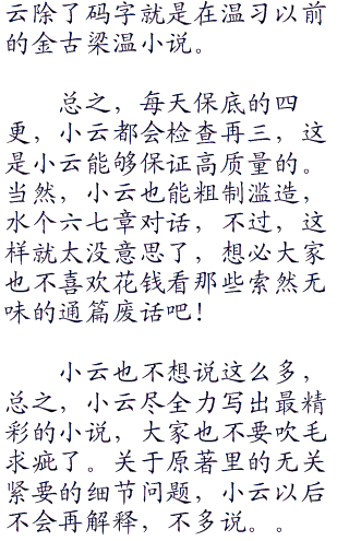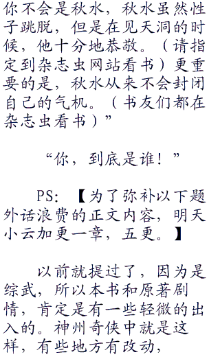 萧西楼有三个儿子,一个女儿。当中最令萧西楼欣慰的是大儿子萧易人,最让萧西楼放心的是二儿子萧开雁,而最让他忧喜无常,是小儿子萧秋水。