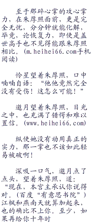 “不不不,我更不会躲在女人后面以求活命。”朱厚照摇了摇头,“我不在乎这一掌的原因,是因为这招碎心掌的掌力,对我来说,根本不算什么。”