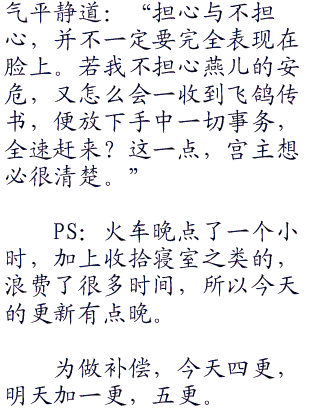 “你莫非以为,接下的那三招,就是本宫主的全力?”邀月深吸一口气,杀机凛然。