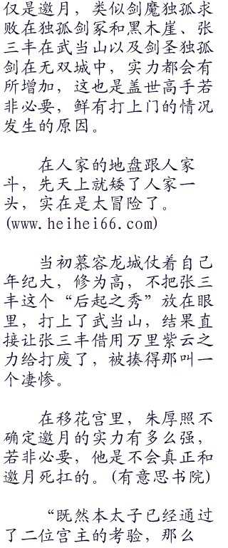邀月微微颔首,心中自有想法:“哼,不枉燕儿为了这个臭小子牵肠挂肚,日夜练功,看得本宫主都心疼”