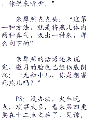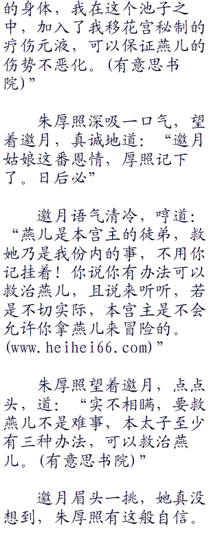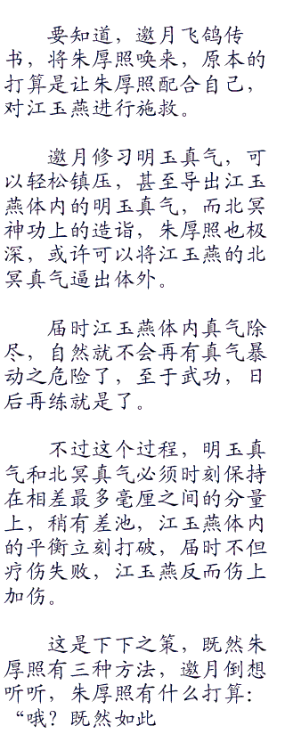 想到这里,朱厚照朝着邀月拱拱手,道:“本太子有办法可以将燕儿身上的内伤治好,还请邀月姑娘行个方便。”