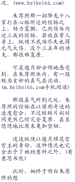 却道为何?因为邀月把脉之后,清晰地感觉到了朱厚照体内的状