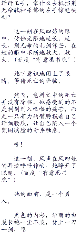 风四娘脸上终于露出了一丝难以置信和惊慌骇然,因为她发现,自己的破剑式不但没能破去荆无命的快剑,反而被荆无命所克制,所破去了。