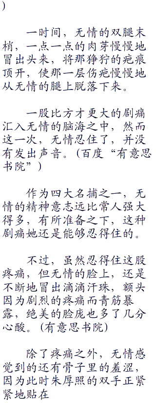 朱厚照翻了翻白眼:“无情断腿十几年了,伤口处早就已经结痂凝成了疤痕,那些疤痕不破去,怎么断肢重生?疤痕破去,能不疼吗?”