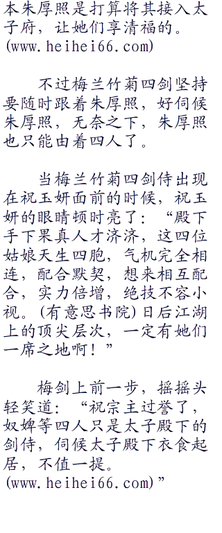 上前奉座的人,是梅兰竹菊四剑侍,她们如今作为朱厚照的贴身近侍,后被朱厚照收入后宫之中,发生了关系。原