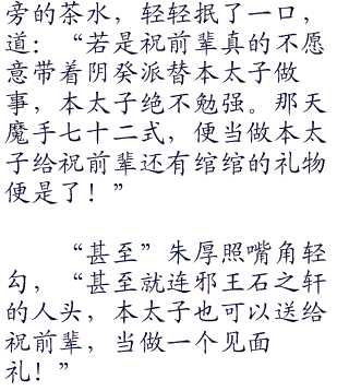 朱厚照高坐主位,双手搭于宝座龙首金柄之上,身着皇族太子蟒袍裘服,浓浓的皇室威严自然而然地从身上散发出来,给他那英俊的容貌平添了一份阳刚庄肃的气质。